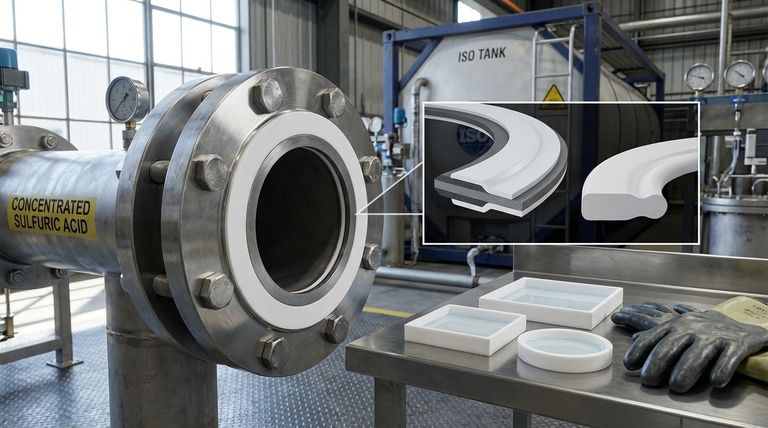 Em um cenário prático como a vedação de um tanque ISO que transporta ácido sulfúrico concentrado, uma junta de PTFE puro oferece a resistência química necessária, mas é propensa a deformação sob a pressão e vibração do transporte, o que pode levar a um vazamento crítico. Uma junta com envelope de PTFE é a escolha superior neste caso, pois seu núcleo interno robusto evita a deformação, garantindo que a vedação permaneça intacta enquanto a camada externa de PTFE lida com a corrosão química.