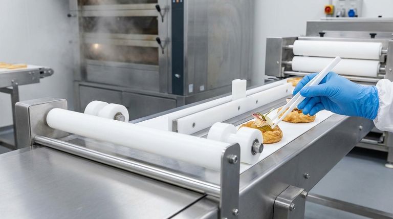 Engenheiros as utilizam para criar componentes como buchas, vedações, rolos e gaxetas para máquinas de processamento de alimentos. Essas peças se beneficiam do baixo atrito e da resistência ao desgaste do PTFE, melhorando a confiabilidade e a longevidade do equipamento.
