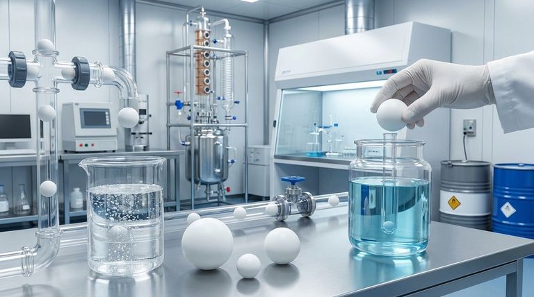 Esta é a aplicação mais direta. As esferas de PTFE são amplamente utilizadas em válvulas (como esferas de retenção), bombas e vedações que gerenciam o fluxo de materiais altamente corrosivos. Elas garantem uma vedação estanque sem serem degradadas pela substância transportada.