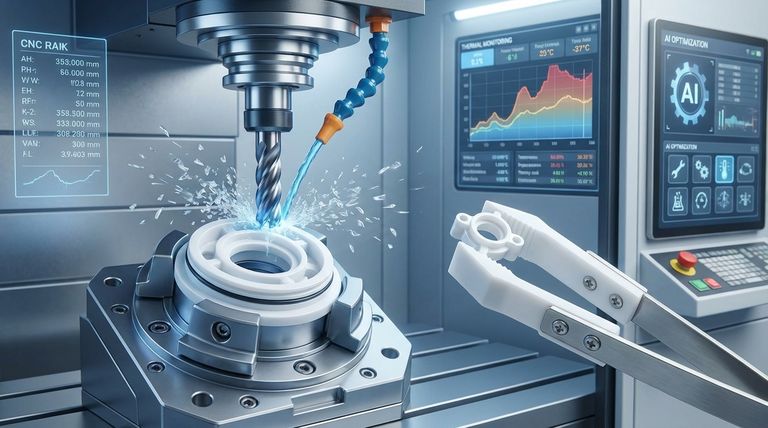 A evolução central na usinagem de Teflon é dupla: alavancar a manufatura inteligente (IA, IoT) para controle de processo em tempo real, enquanto simultaneamente avança nas técnicas de ferramentas e fixação para superar as limitações físicas fundamentais do material.