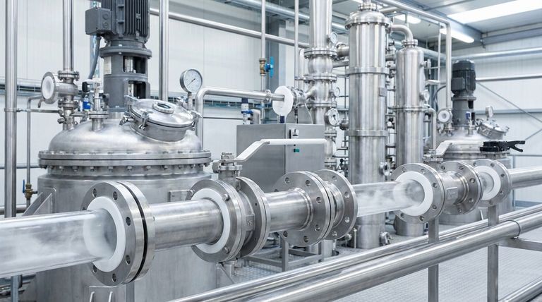 É quimicamente inerte à maioria dos produtos químicos industriais, incluindo ácidos fortes, álcalis e oxidantes. Também apresenta uma ampla faixa de temperatura de operação, tipicamente de -100°C a 260°C.
