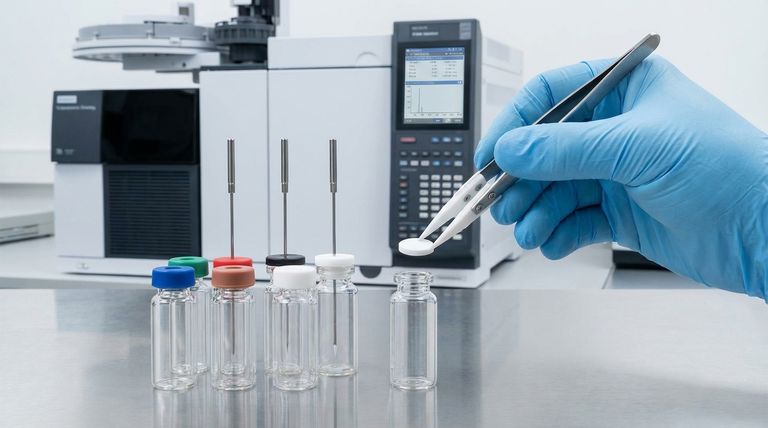 A solução mais comum em laboratórios modernos é o septo laminado de PTFE/Silicone. Este design combina uma fina camada de PTFE quimicamente inerte que fica voltada para a amostra com uma camada mais espessa e flexível de silicone.