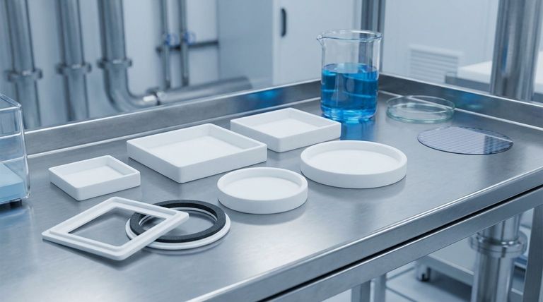 Semelhante aos produtos farmacêuticos, esses campos exigem pureza extrema. A natureza não reativa do PTFE impede que ele lixivie impurezas na água ultrapura ou em soluções biológicas sensíveis usadas nesses processos de fabricação.