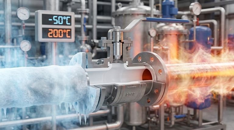 A faixa de temperatura especificada para uma válvula revestida com PTFE é uma propriedade de todo o sistema, não apenas do revestimento de PTFE. A interação entre o revestimento, o corpo da válvula e a pressão operacional determina os verdadeiros limites operacionais, que são frequentemente mais conservadores do que as capacidades isoladas do material.